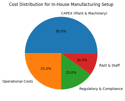 A pie chart illustrating cost distribution for in-house manufacturing has been generated above.